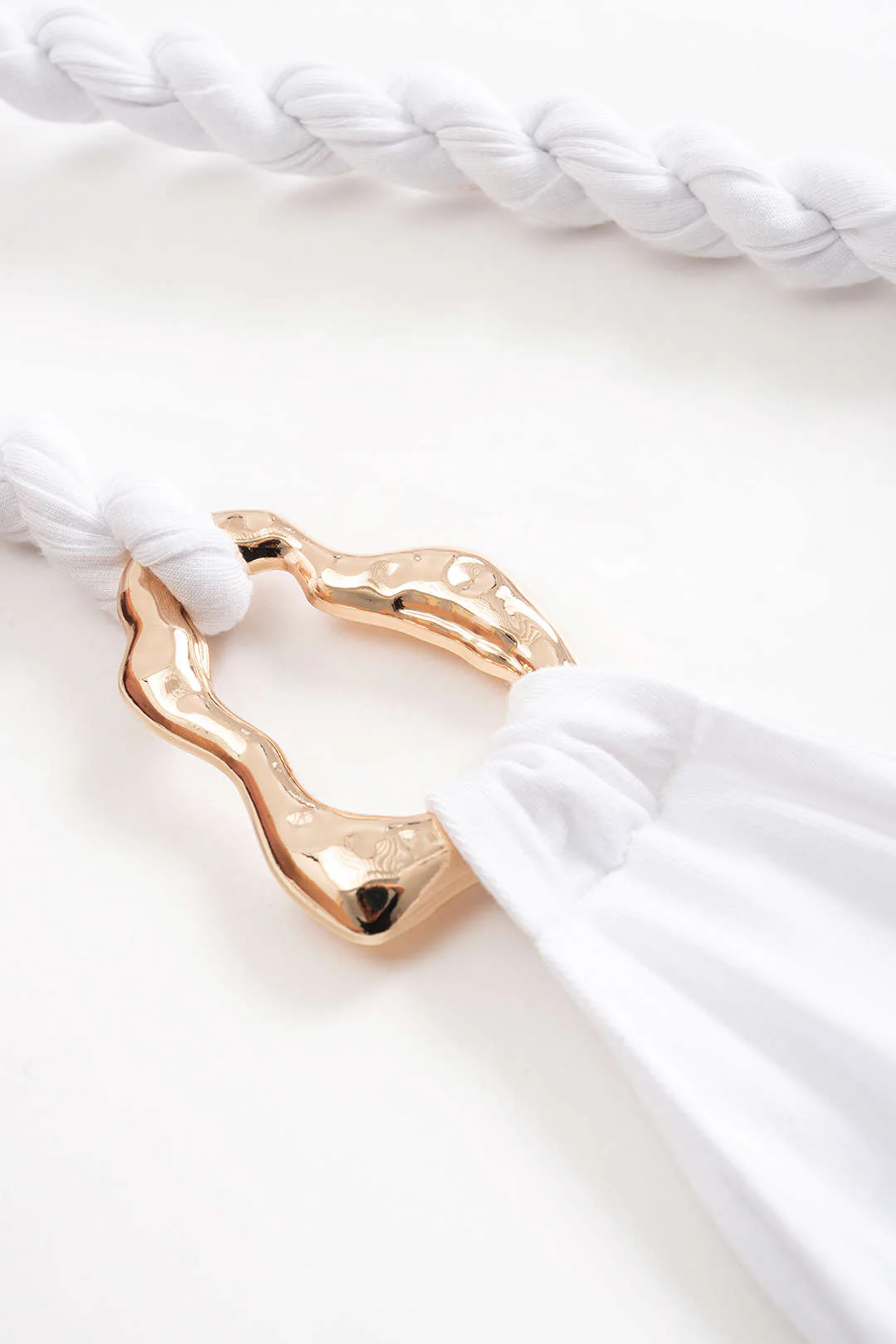 Asymmetrical Twist Knot Metallic Skirt Ensemble