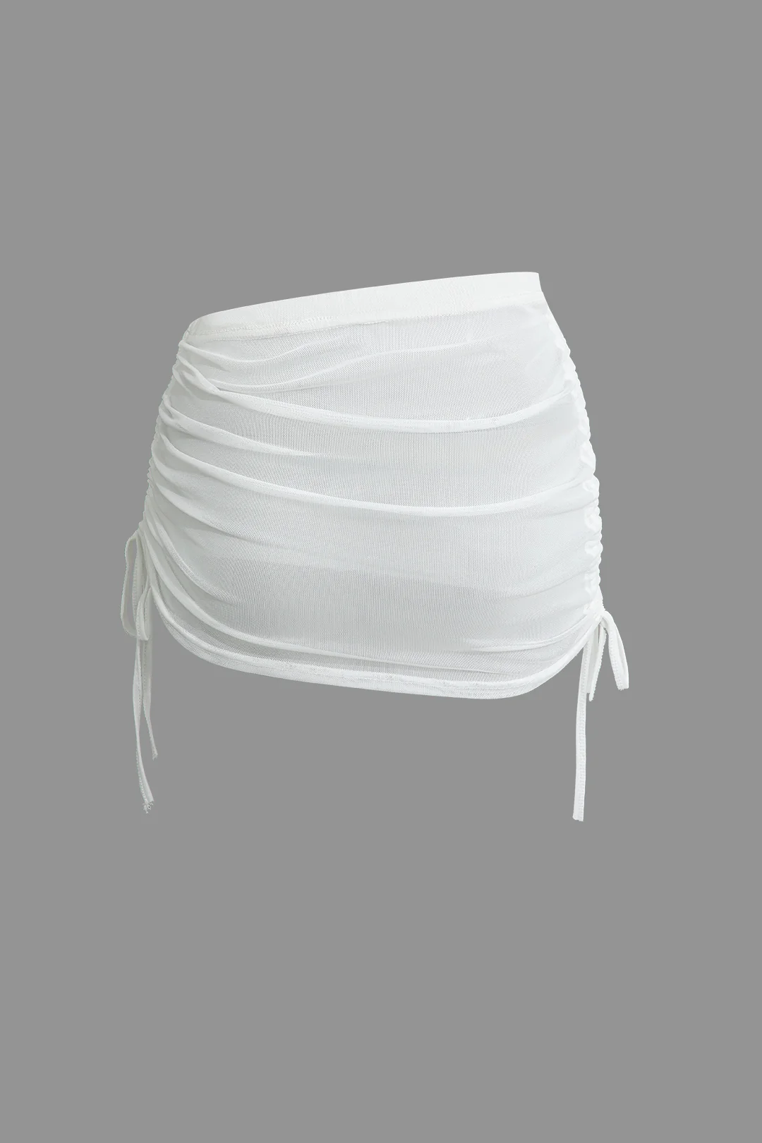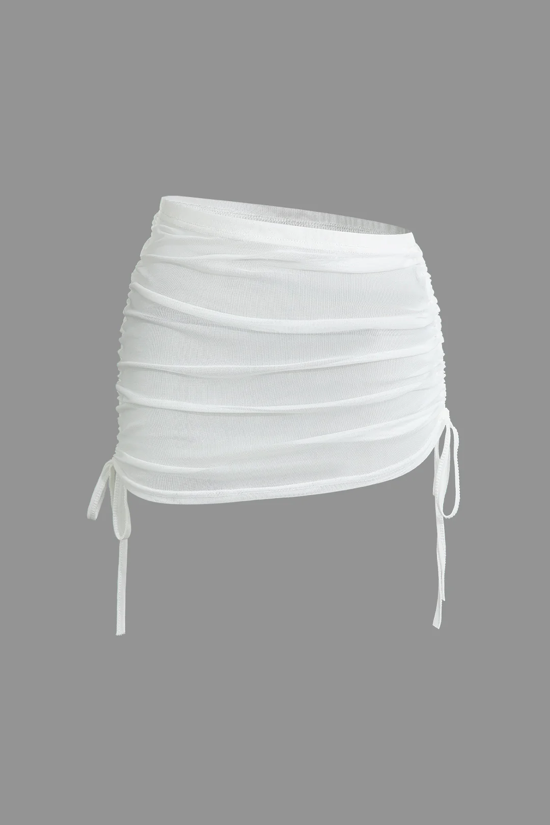 Cowl Neck Backless Tie Mesh Top and Asymmetrical Mini Skirt Outfit Set