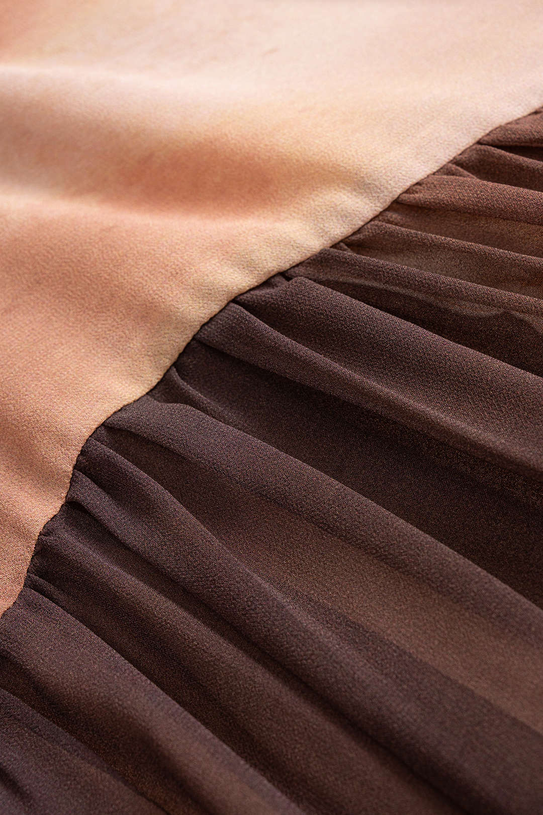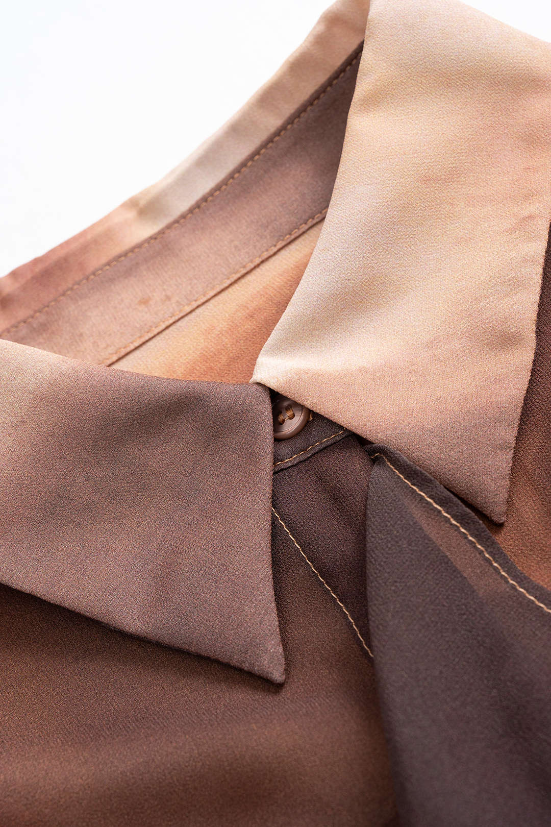 Tie Dye Ombre Print Chiffon Button Ruffle Long Sleeve Blouse