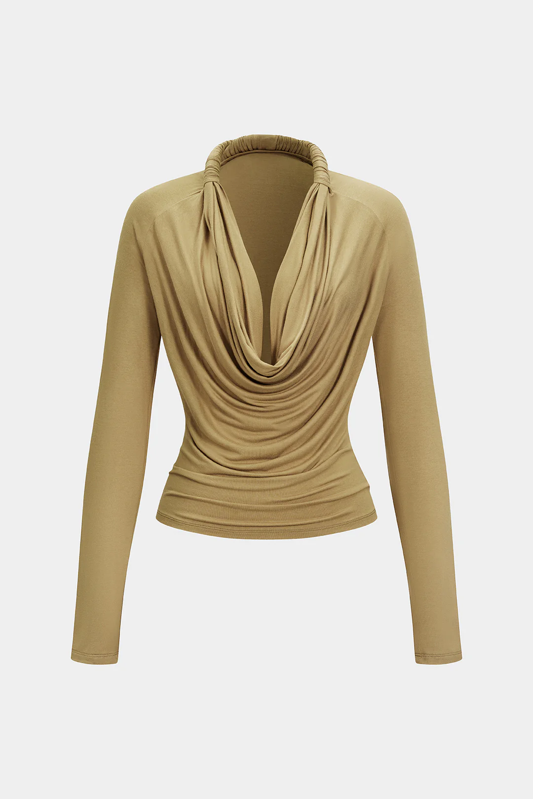 Ruched Draped Cowl Neck Long Sleeve Blouse
