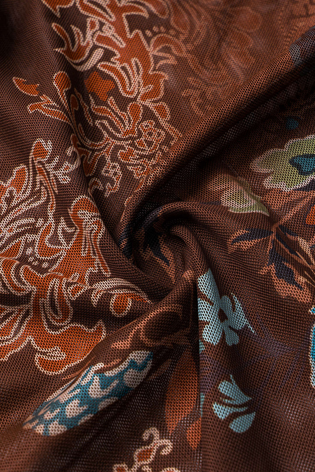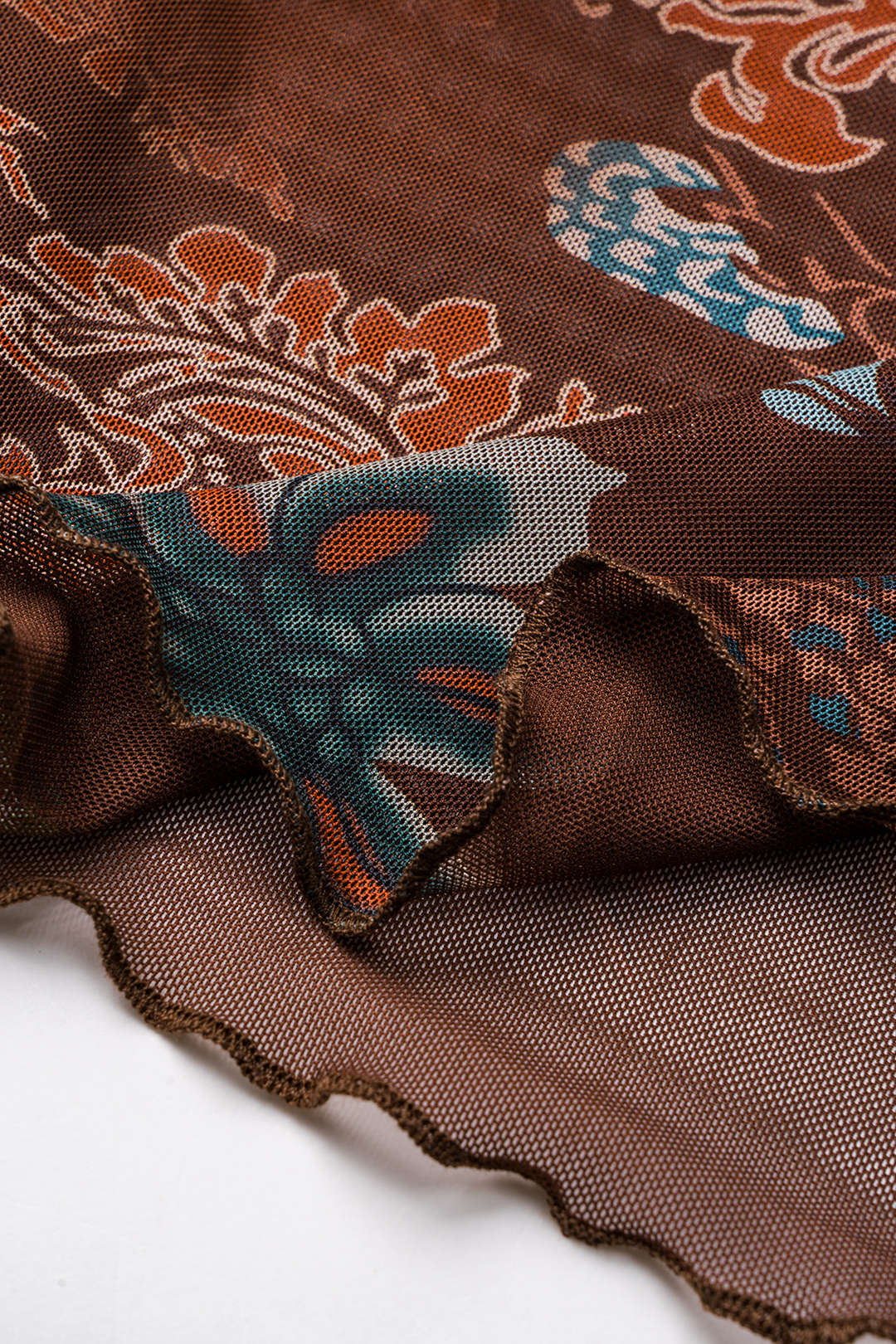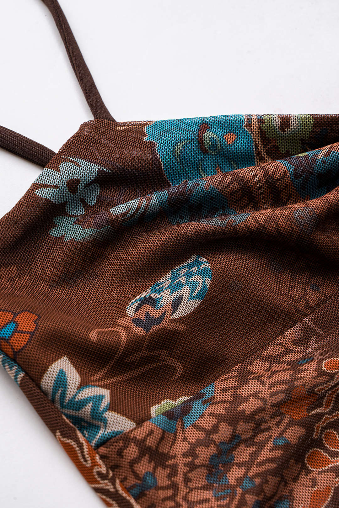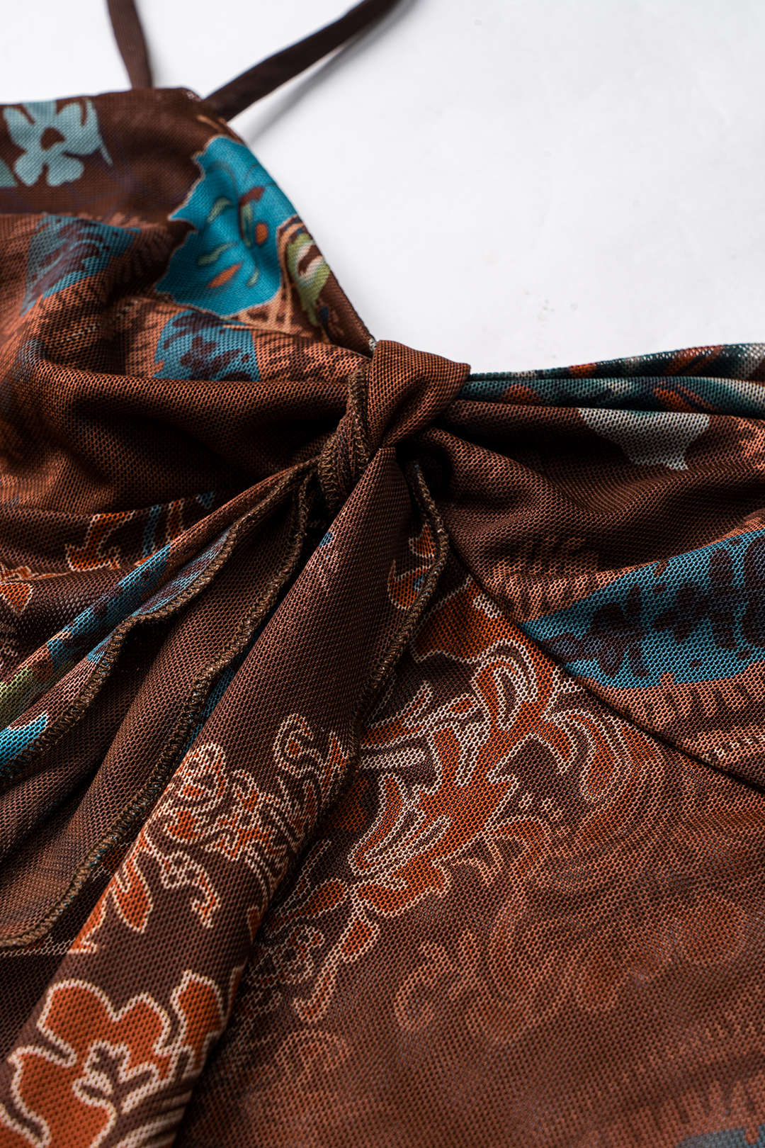 Contrasting Retro Pattern Mesh Tie-Knot Slip Cami Top