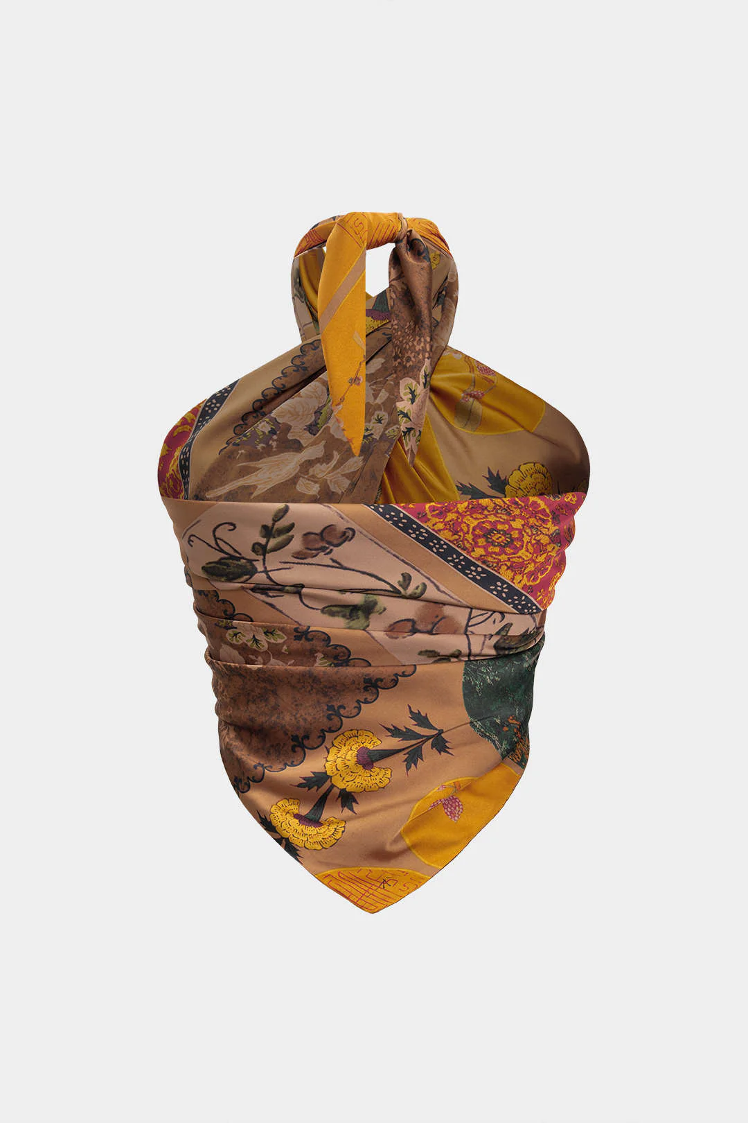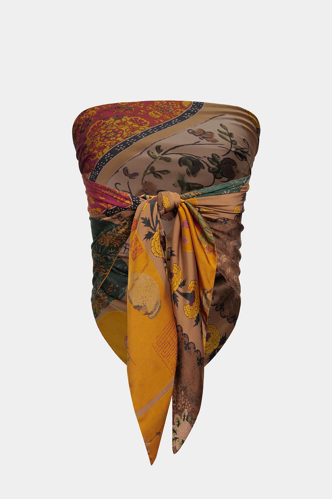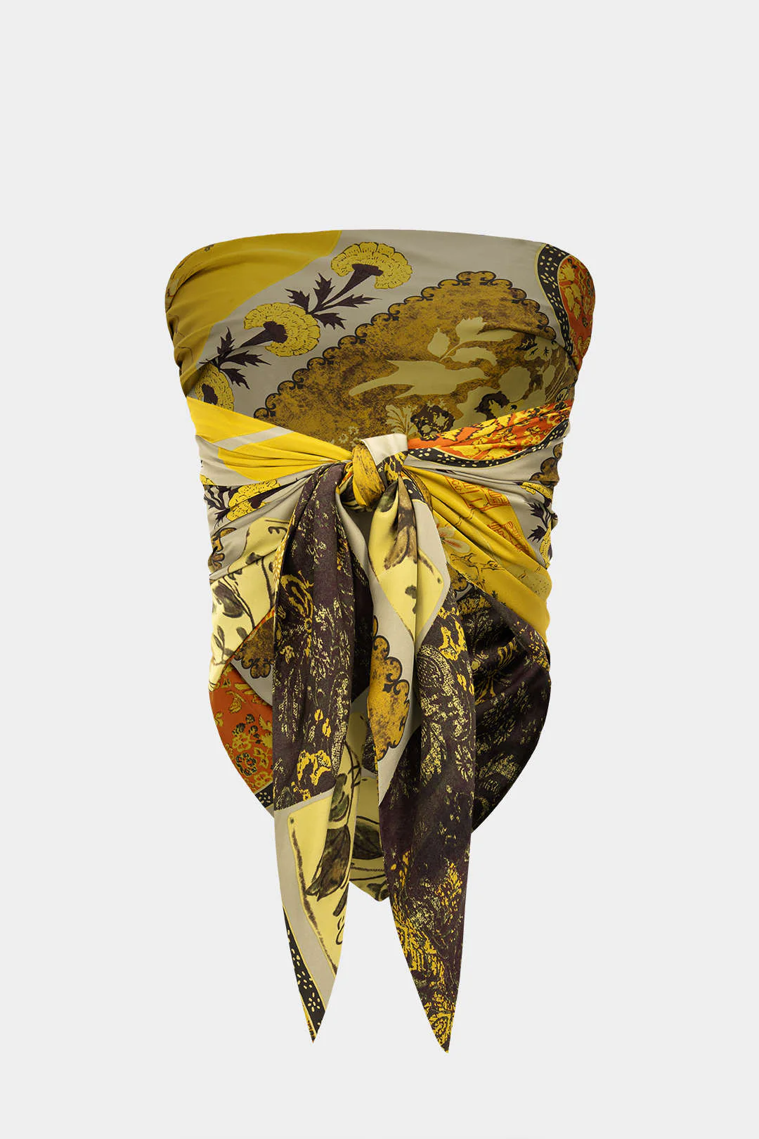 Retro Patterned Satin Tie-Up Tube Top